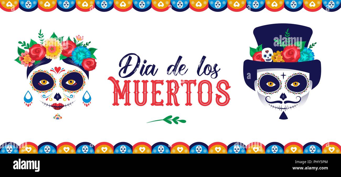 Dia De Los Muertos Man And Woman - Dia De Los Muertos Day Of The Dead Mexican Holiday Festival Vector Poster Banner And Card With Make Up Of Sugar Skull Woman And Man Stock Vector Image Art Alamy